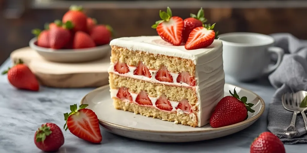 A delightful strawberry cream cake that combines fluffy layers with creamy frosting, perfect for any celebration.