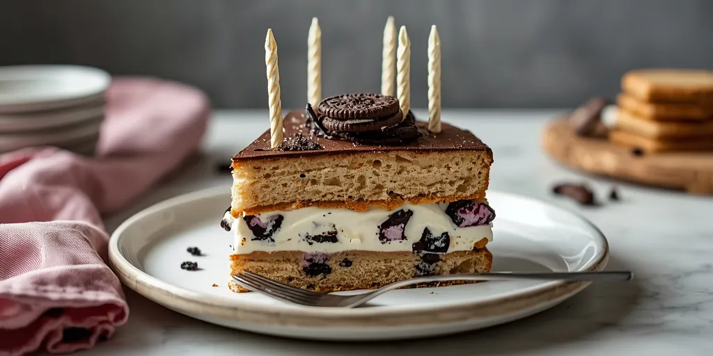 A delightful and creative birthday cake that combines the classic ice cream sandwich with a celebratory cake, perfect for any occasion.