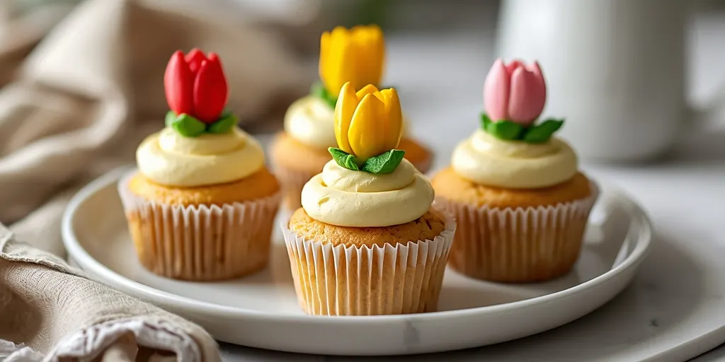 These delightful garden-themed cupcakes topped with buttercream tulips are perfect for any spring celebration. Their vibrant colors and delicious taste make them a crowd-pleaser.