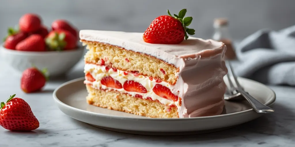 Pro Tips: Ensure all ingredients are at room temperature. Use a serrated knife for even strawberry slices. Ingredient Substitutions: Frozen strawberries can be used, but thaw and drain them well. How to Serve: Best served chilled with coffee or tea. Storage & Freshness: Store in an airtight container in the fridge for up to 3 days. Make-Ahead Tips: Assemble the cake a day in advance to enhance flavors.