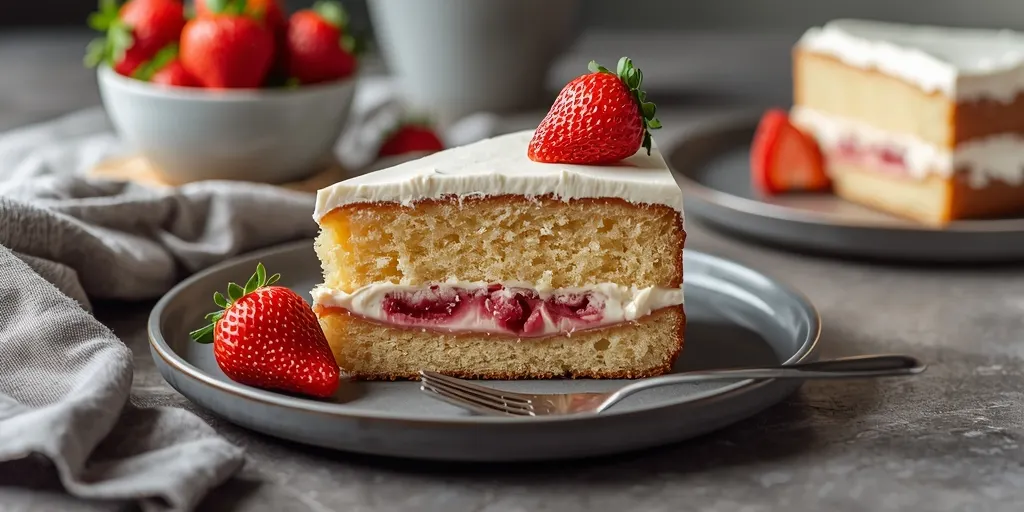 A delightful strawberry cream cake made from scratch with fresh strawberries and a creamy filling.