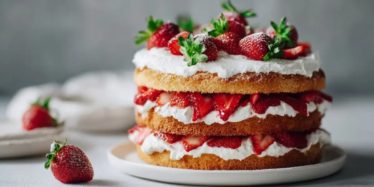 A delightful strawberry shortcake birthday cake perfect for celebrations, featuring fresh strawberries, whipped cream, and fluffy cake layers.